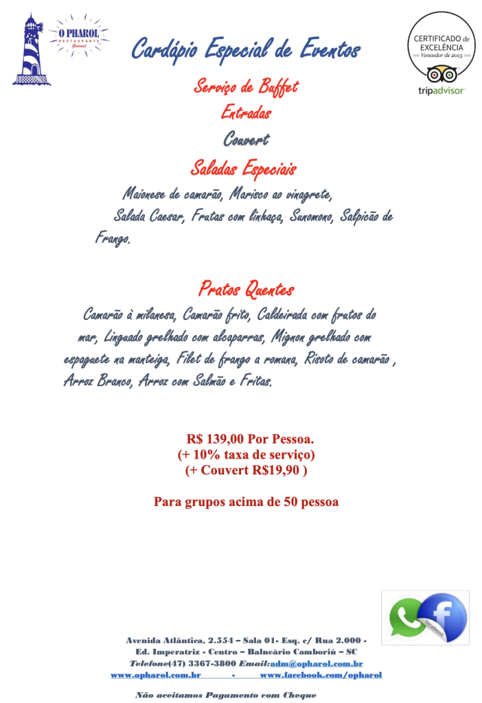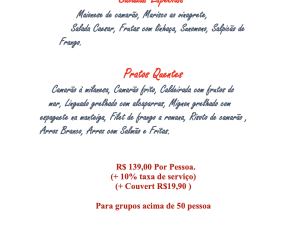 O restaurante irá organizar um buffet, conforme cardápio e valor abaixo.